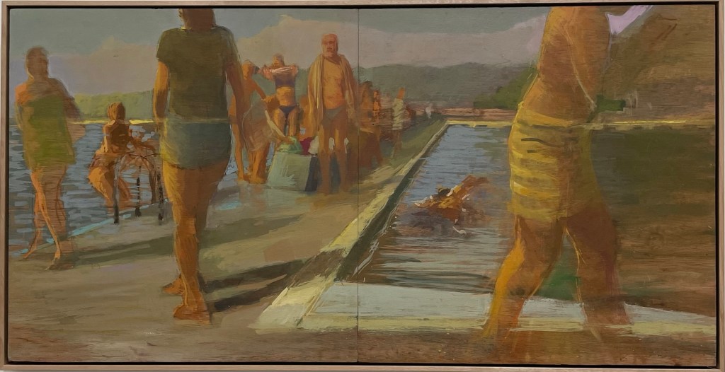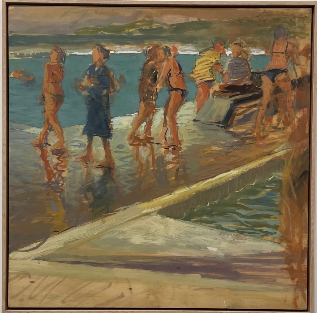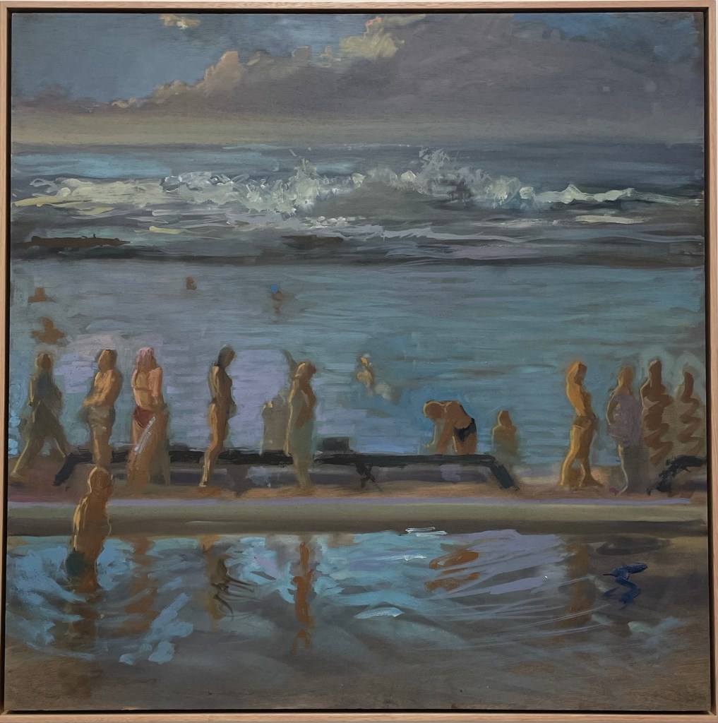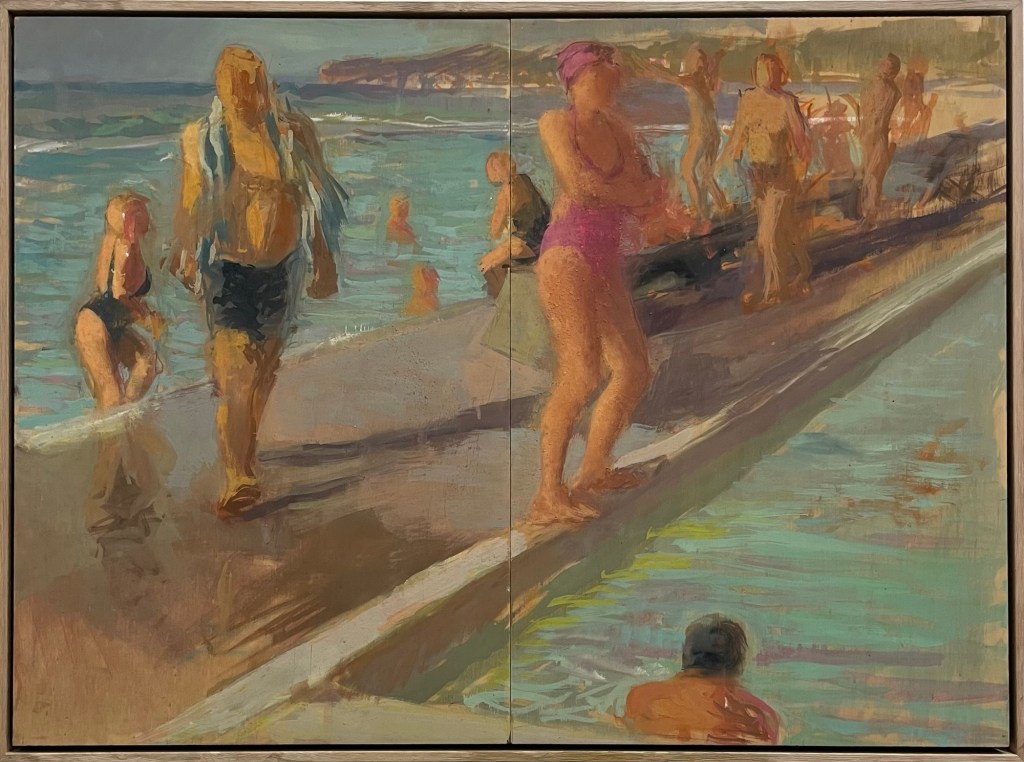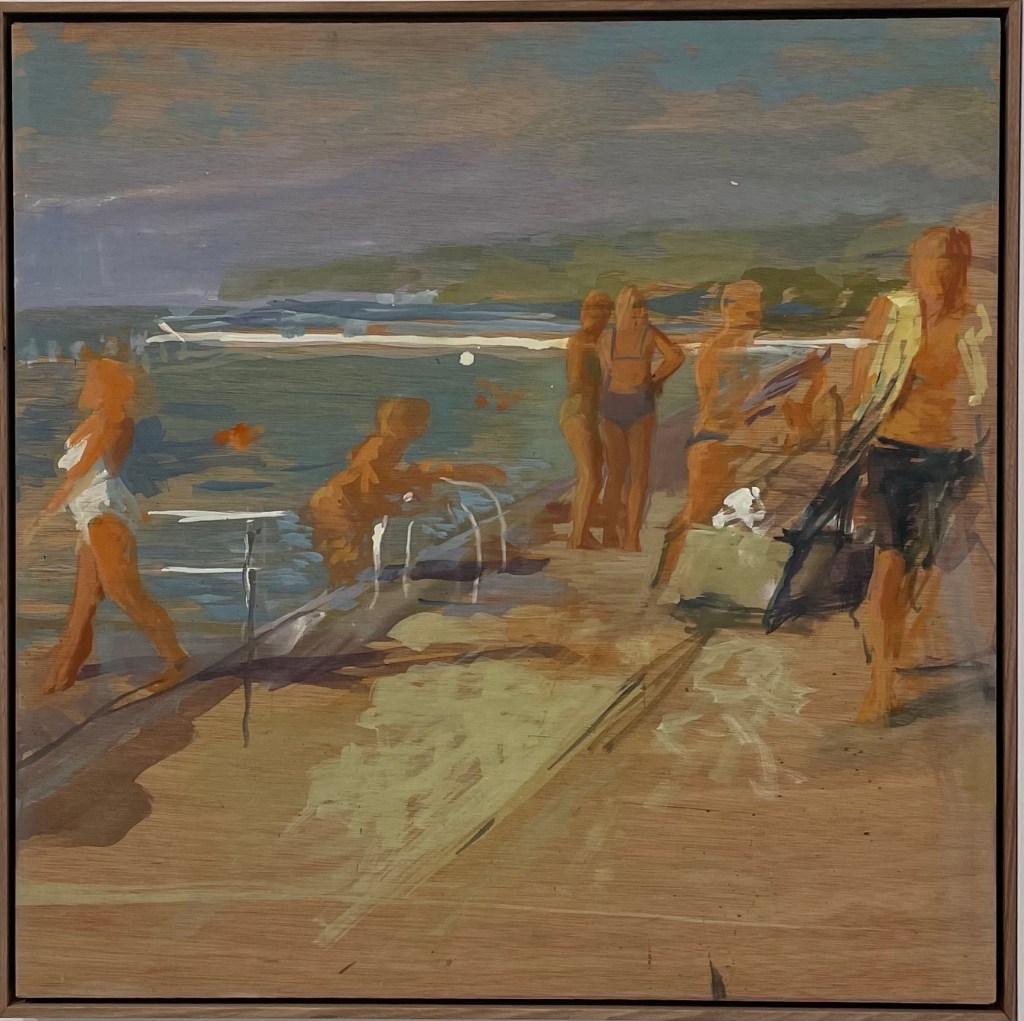 Mid-week Merewether, 2025 gouache on plywood 83 x 103cm $2200.00The First Dance, 2025 gouache on plywood 83 x 83cm $2000.00 SOLD Pool Tango, 2025 gouache on plywood 83 x 83cm $2000.00 SOLDSisters, 2025 gouache on plywood 64 x 122cm $2400.00 Into the Sun, 2025 gouache on plywood 63 x 123cm $2400.00 SOLD Best Pool Day, 2025 gouache on plywood 83 x 125cm $2600.00Windy morning Bathers, 2025 gouache on plywood 61.5 x 125cm $2400.00The Conversation, 2025 gouache on plywood 83 x 83cm $2000.00 SOLD Beautifully Brisk!, 2025 gouache on plywood 63 x 122cm $2400.00 SOLDPool Day, Merewether, 2025 gouache on plywood 63.5 x 123cm $2400.00 SOLDHolidays, 2025 gouache on plywood 88 x 88cm $2200.00Boy with Red and White striped towel, 2024 gouache on plywood 53 x 64.5cm $1400.00Early Birds, 2024 gouache on plywood 63 x 63cm $1400.00 Magenta Bather, 2025 gouache on plywood 62 x 83cm $1700.00 SOLD