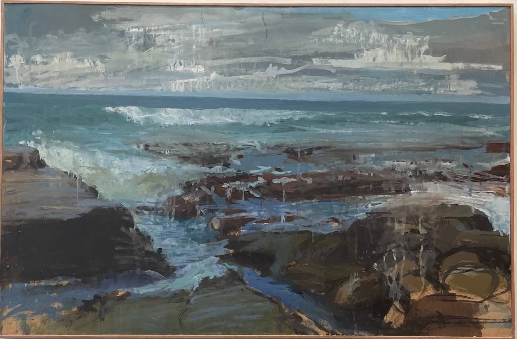 On my return to Newcastle, the beach held my heart and Merewether held my soul. Painting Merewether has become a process of immersing myself in the colour, light, movement, and mood on offer on that day. It takes me back to being a child, walking the rock pools and observing not only nature but those that inhabit it.
